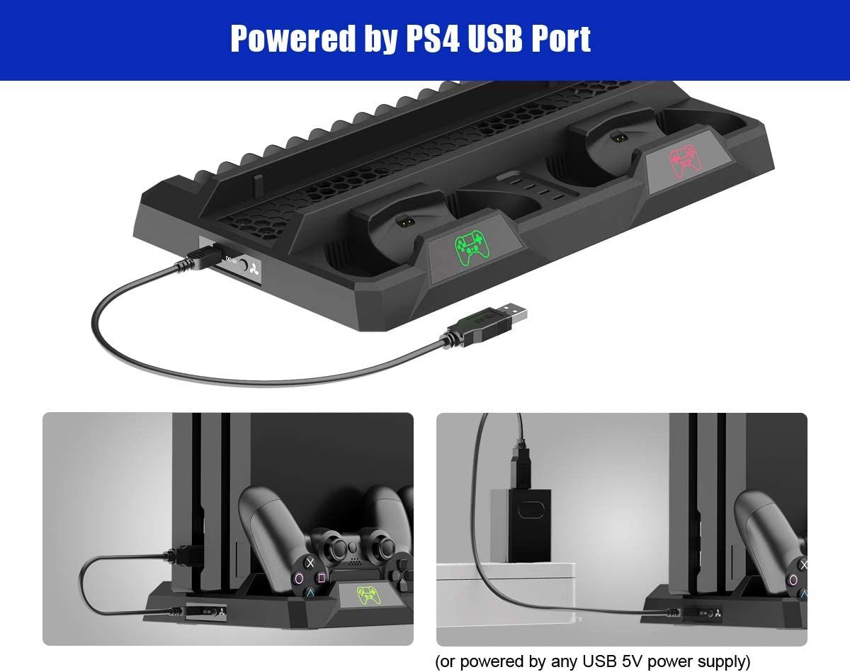 - Easy Assembly: Simply place your PS4 in the stand and put the DS4 controller into the charging dock. The USB cable powers everything. It will be fully charged within 2 or 3 hours for the next games session