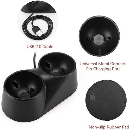 Dual Charger Dock for Playstation Move Controller,USB Charging Station Stand for PS4 VR