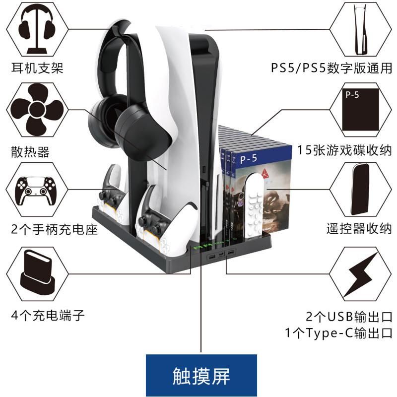 Buy PS5 host universal multi-function cooling base with disc storage rack handle double-seat charging headphone storage bracket black in Nigeria
