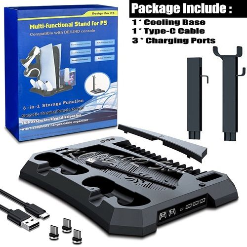 Equipped with game disc rack, can hold 15 game discs. Saving space design, it keeps your controllers charged, cools your ps5, keeping everything neat and tidy.