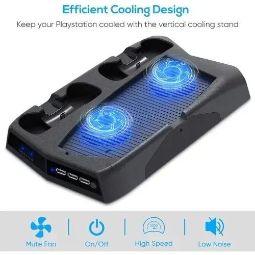Specially designed for your PS5 Digital Edition or Ultra HD Console. Allows you to store your PS5 console in its upright vertical position. Built in 4 slot with 4 type c connectors, 2 extra dongles will extend the service life. You can plug 2 of them into the controllers, and simply place the PS5 Controller on the charging station.