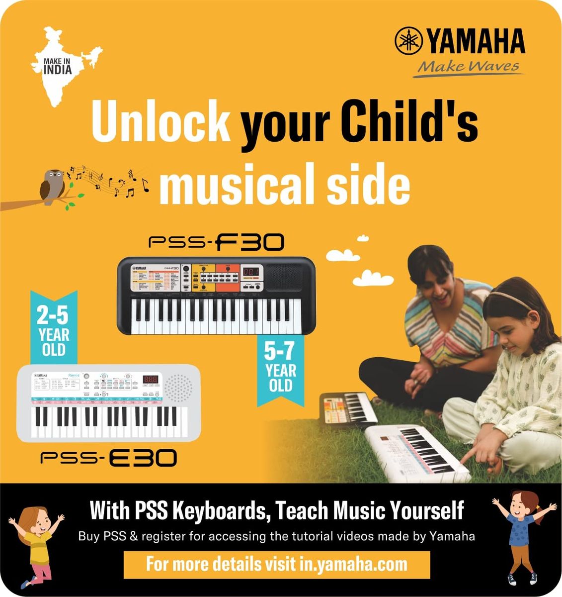 When they strike their first note, children light up with excitement. As they experiment more and more, they'll discover beautiful combinations of notes to share with you. They experiment, discover, all the while learning and developing a musical part of their personality. The PSS-F30 is the spark of their creative flame!