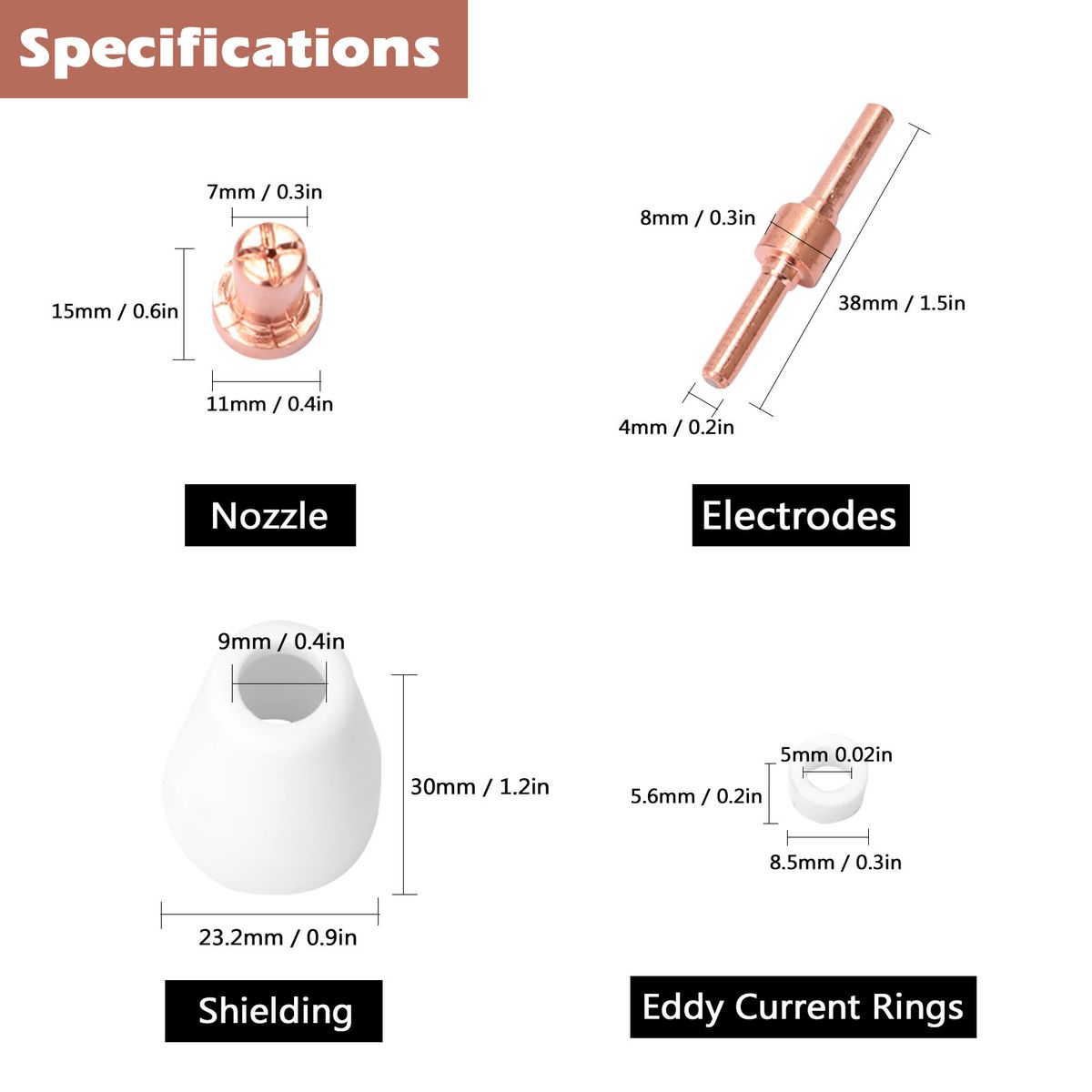 electrodes: 38 * 8 * 4mm / 1.5 * 0.3 * 0.2in