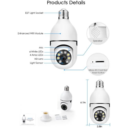 Light Bulb Camera 360° Fisheye Lens Wifi Security Camera Bulb 1080p
