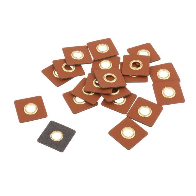 20 pcs PU leather sew on badges patch labels inner 8mm metal eyelets grommets.