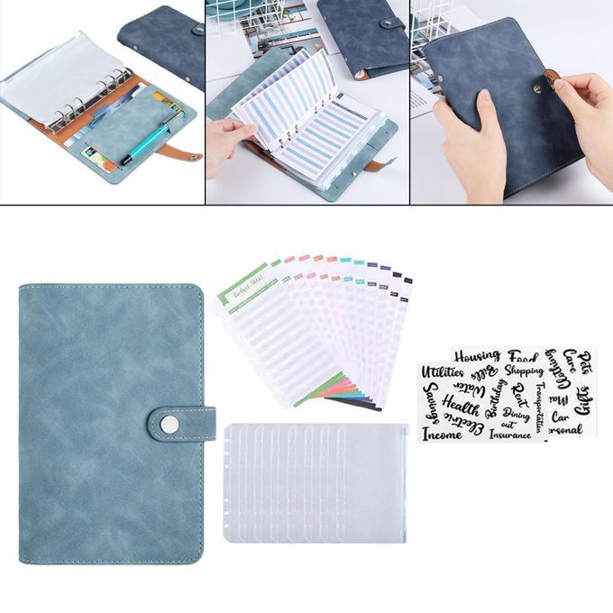 Effortless to Use: It is effortless to use, just press both ends of the switch to open the loose-leaf ring of the binder cover, and the notebook will not be broken after repeated opening and closing.High-quality Leather: The exterior is made of high-quality leather, which feels comfortable and has no peculiar smell. The interior is made of PVC+double-adhesive paper, impervious, not easy to tear, and translucent materials, which are clearly visible for quick and easy identification.Suitable for: The translucent bag is very suitable for storing small items such as receipts, cards, stamps, etc., and the access is clear at a glance.Light and Practical: The product is small in size, light in weight, light and practical, and can be easily put in a bag, backpack, suitcase or desk.Products Include: loose-leaf coverx1, color budget tablez12, transparent zipper bagx8, English word labelx2.