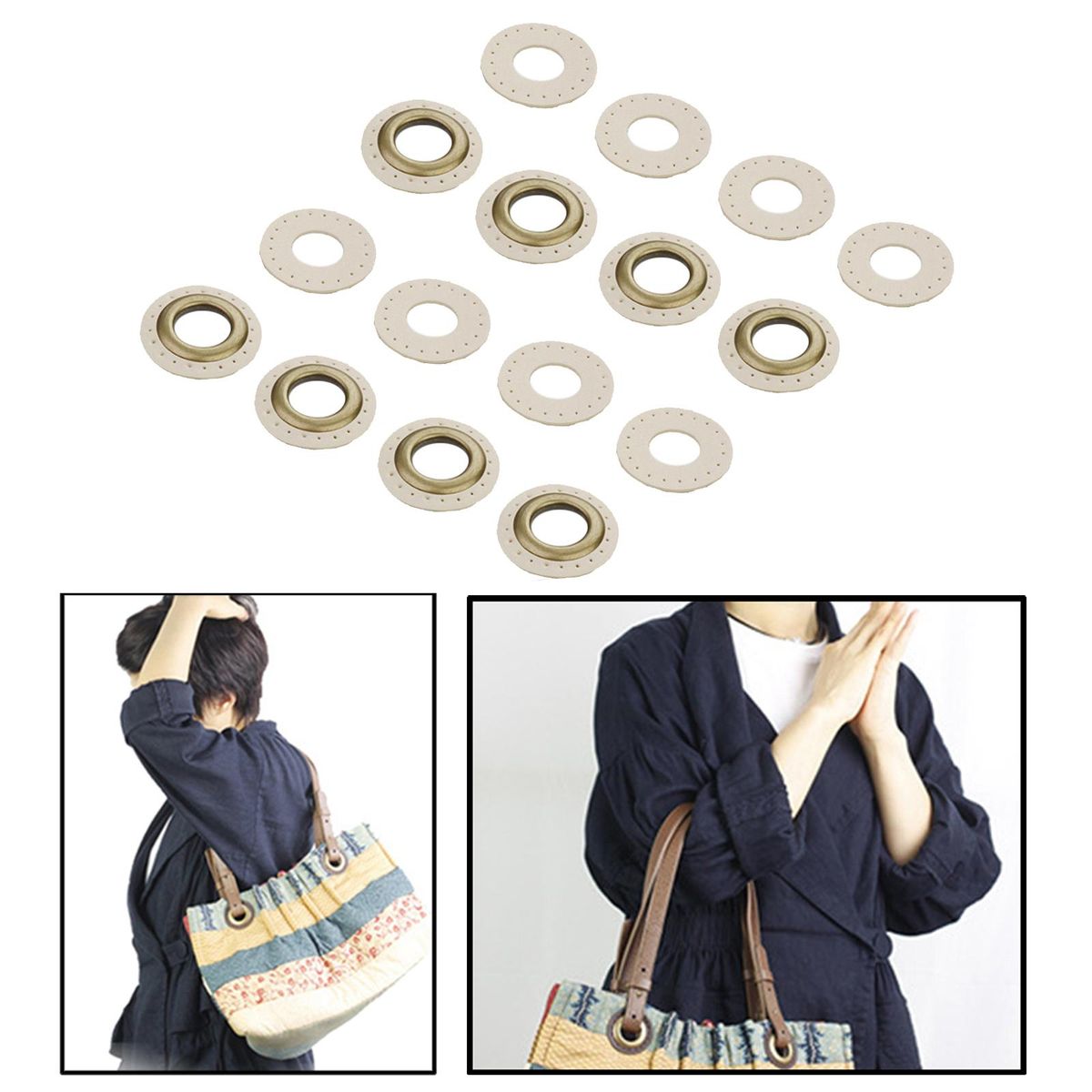 PU leather sew on patch labels eyelets grommets kit.Made of high quality PU leather material, easy to sew on.Inner diameter 2cm, enough space to easily attach hooks or durable rope, not easily deformed.One size fit most and sufficient quantity to use, meet your requires.Suitable for DIY crafts projects, decorating, knitting, sewing, you can sew them on bag, wallet, purse, doll cloth, clothing tags, etc.