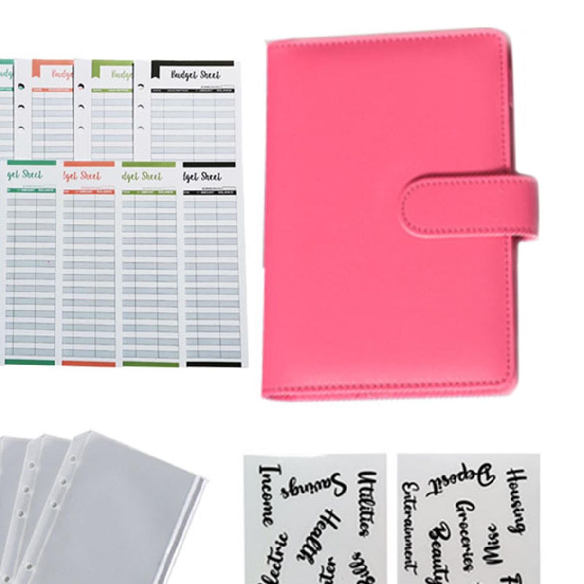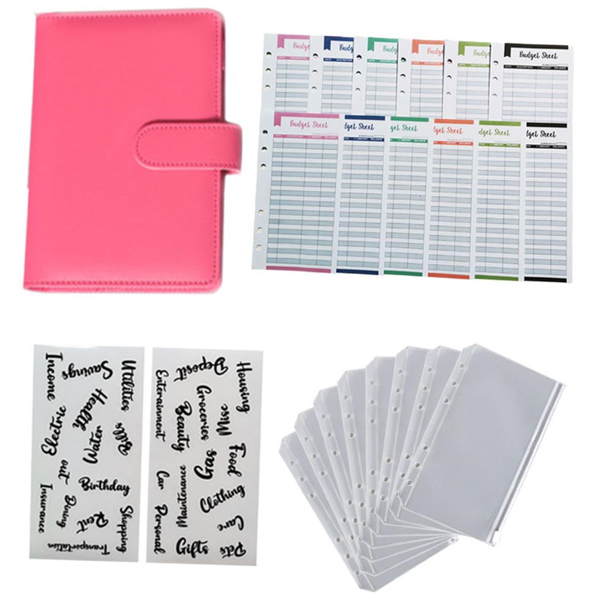 1 Piece Notebook Binder8 Pieces Binder Pockets12 Pieces Expense Budget Sheets2 Pieces Letter Sticker