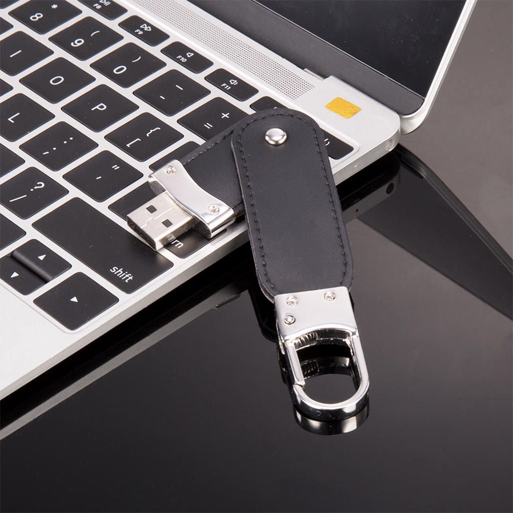 Metal Hook Lock Keyring Buckle and PU Leather Protector Case High-Speed USB 2.0 Flash Drives Rotating Memory Stick Storage Swivel Pen Thumb Drives.