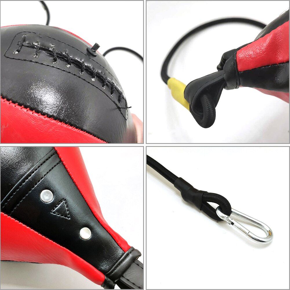 Double End Boxing Dodge Speed Ball PU Leather Inflatable Muay Thai MMA Training Floor to Ceiling Punching Bag Features: - The inner part is an inflatable tank with two elastic ropes of high elasticity, which can be trained ar the two ends are fixed. - It is made of strong PU leather and durable. - Widely used to practice boxing speed. - Improve your endurance, speed and accuracy. - High quality PU leather design, practical and durable. - Suitable for boxing, free ing, Taekwondo or other boxing training. Specifications: Main material: high quality PU leather Product color: Yellow, , Red Ball size: 350x180x180mm/13.8x7.08x7.08" Product net weight: 400g Stretch length to: 225cm/88.6" Length including rope: 137cm/53.9" Usage method: Use a pump to inflate the ball (NOT full). Fix the spring ropes on both ends to floor and ceiling or left and right, which is very convenient and practical. Attention: The ball in the package is not inflated. You need to inflate it yourself ar receiving the package. 1. There may be slight size deviations due to manual measurement, different measuring methods and tools. 2. The picture may not reflect the actual color of the item because of different photographing light, angle and display monitor. 1 X Double End Boxing Speed Ball