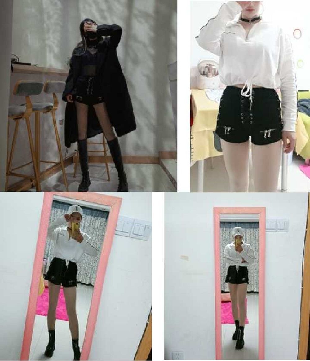 Rosetic Bandage Сексуальные джинсовые шорты Женщины Уличная одежда Готические джинсы Мини с высокой талией на шнуровке Повседневная застежка-молния Черный Goth Club Fashion 2021 Мини-шорты Горячий панк в корейском стиле Rosetic PU Leather Women Shorts Casual Gothic Club Punk Hip Hop Straight Thin High Waist Zipper Black Female Summer Shorts