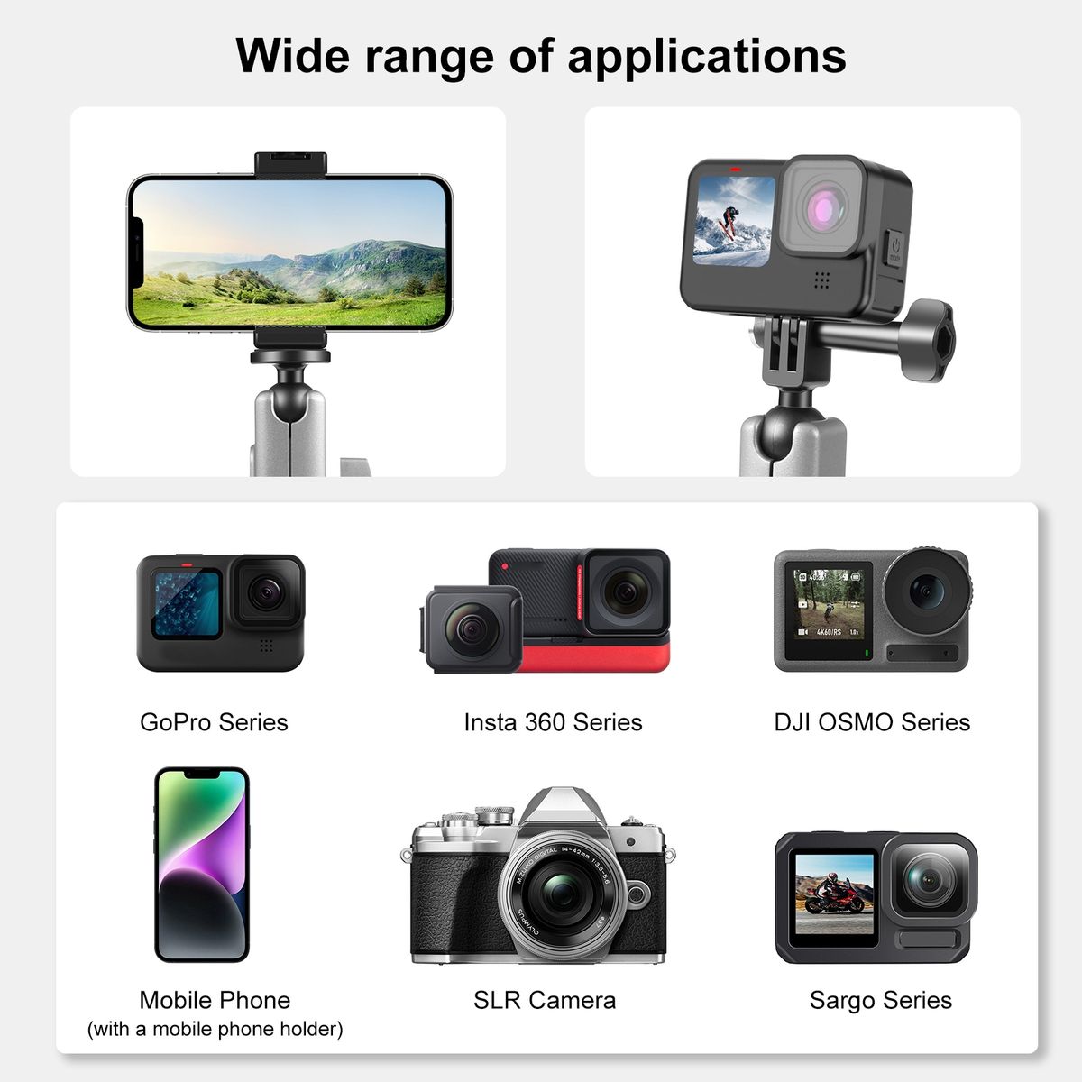 【Compatibility】This bike mount is designed to accommodate a variety of action cameras, including but not limited to GoPro Hero 11/10/9/8/7, SJCAM, , and other similar devices.