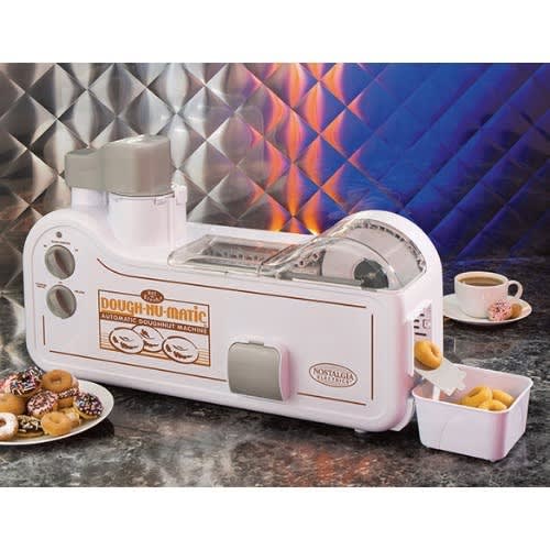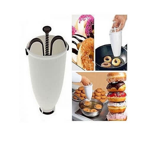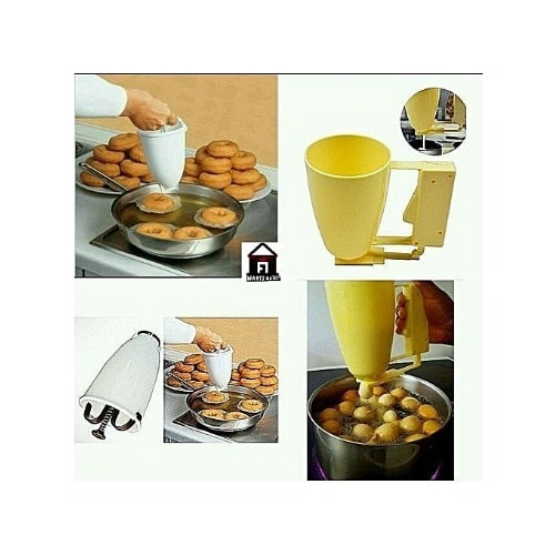 Dispenses batter quickly and evenly! Perfect for making delicious old-fashioned doughnuts. Pour in the batter, drop batter in oil and cook, push handle makes it easy to make perfect donuts .. No mess steady-control dough container .. Regulate the flow of batter. Eliminates rolling, cutting and forming, donuts by hand.