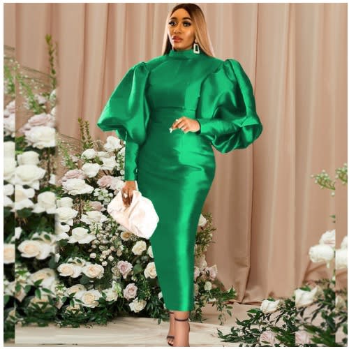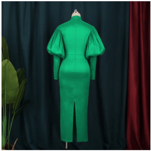 Buy Puff Sleeve Party Evening Long Gown - Green in Nigeria