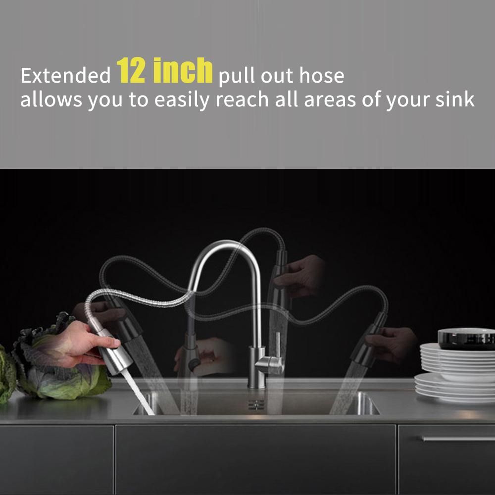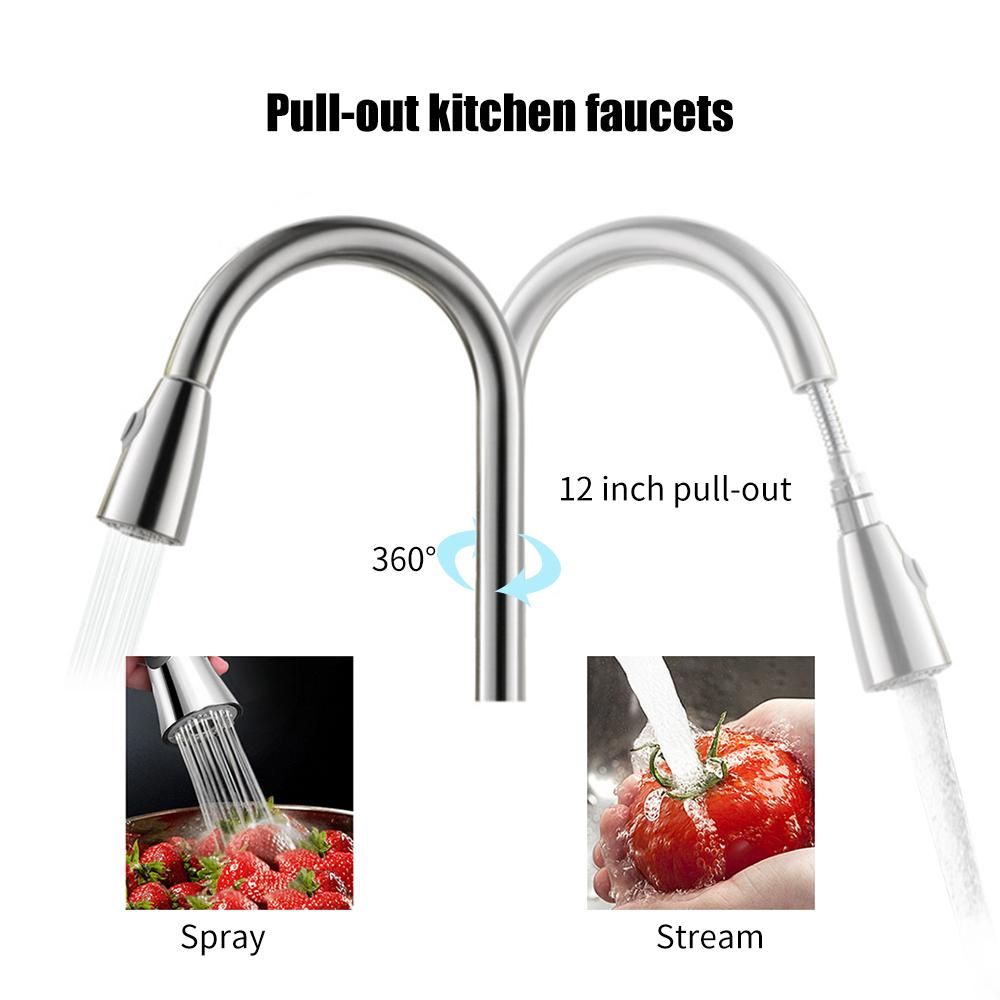 Buy Pull Out Kitchen Faucets with 2 Spray Modes High Arc Bathroom Basin Sink Faucets Pull Down Sprayer Ceramic Valve Brushed Nickel Finished 360 Degree Swivel Water Tap in Nigeria