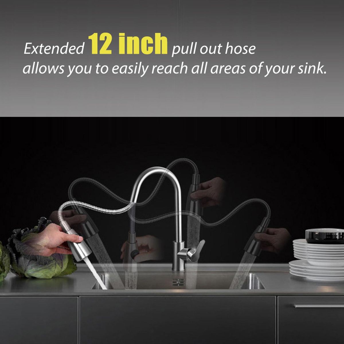 Buy Pull Out Kitchen Faucets with 2 Spray Modes High Arc Bathroom Basin Sink Faucets Pull Down Sprayer Ceramic Valve Brushed Nickel Finished 360 Degree Swivel Water Tap with Cold & Hot Water Inlet Pipes in Nigeria