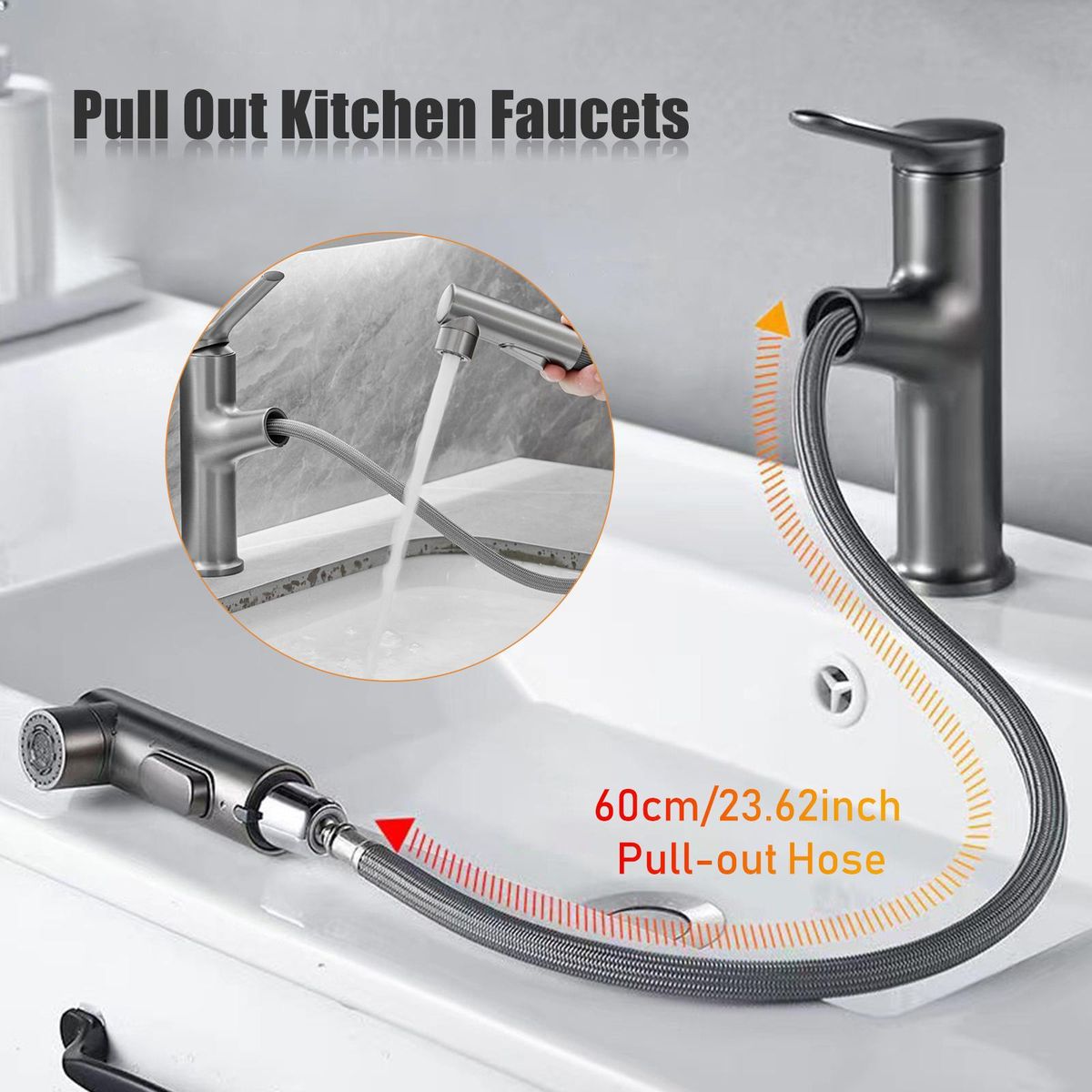 Buy Pull Out Kitchen Faucets With 3 Spray Modes Single-Handle 23 Inch Pull Down Bathroom Sink Sprayer Faucet Ceramic Valve Hot and Cold Water Mixer Water Tap in Nigeria