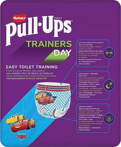 - Easy toilet training - Huggies Pull-Ups Trainers Day for Boys are potty training pants with a flexible fit and a 360˚ waistband that constantly adjusts to keep your little one comfortable as they go off on their adventures