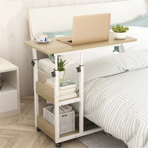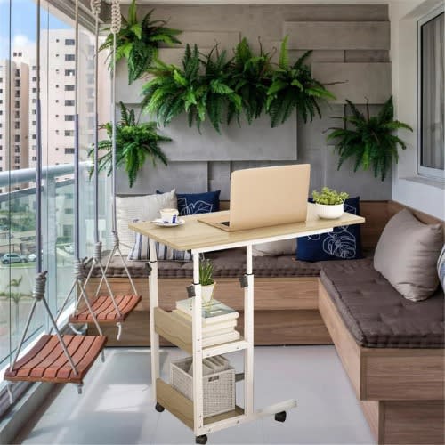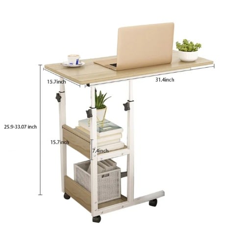 FUNCTION: Adjustable height, perfect for both adults and kids to use under different environment.DESIGN: 4 wheels bottom design, it's easy to move around and at home with it's light weight. Wheels can also be locked to prevent unwanted movement.MATERIAL: Natural Wooden Surface, non-toxic and smooth, it's comfortable to touch and lay on the desk. Premium quality ply board make it easy to clean - Waterproof & Dirtproof.Product Dimensions: L 23.6" x W 15.8" x H minimum 26" - maximum 36" | ADJUSTABLE. Easy to assemble with included components such as screw driver, tightener, wheels etc.MULTI PURPOSE: It is steady enough to hold laptop and books and other day to day items. It can also be used as a snack tray table. It is not recommended to use heavy items like printer