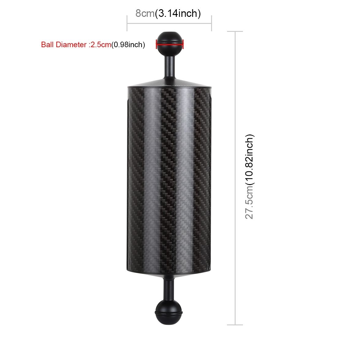 PULUZ 10.82 inch 27.5cm Length 80mm Diameter Dual Balls Carbon Fiber Floating Arm, Ball Diameter: 25mm, Buoyancy: 800g