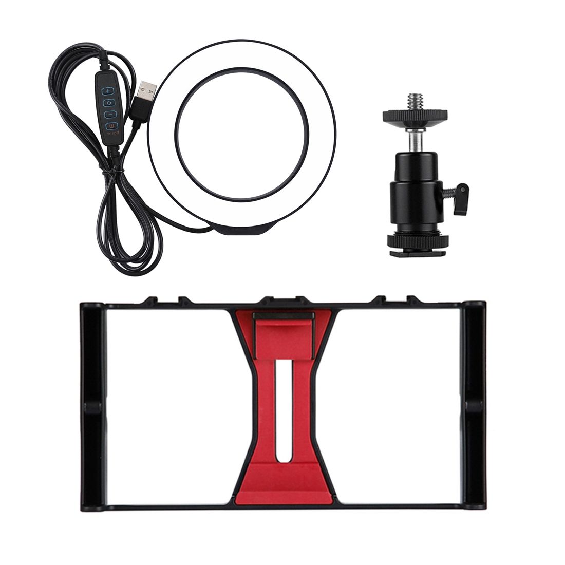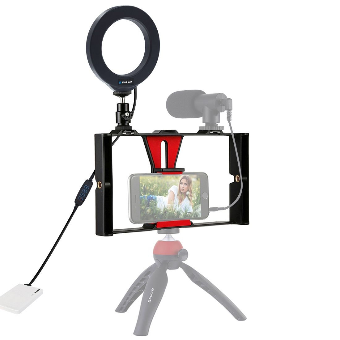 PULUZ 2 in 1 Vlogging Live Broadcast Smartphone Video Rig + 4.7 inch 12cm Ring LED Selfie Light Kits with Cold Shoe Tripod Head for iPhone, Galaxy, Huawei, Xiaomi, HTC, LG, Google, and Other Smartphones(Red)
