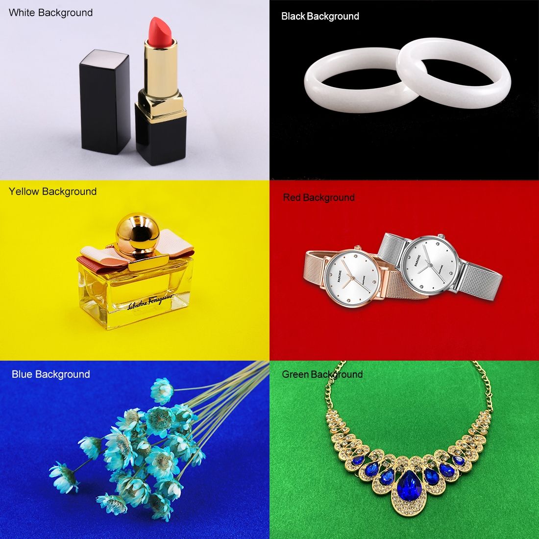 5. With 6 backgrounds pads, and build-in light and USB cable (You should prepare a usb charger to power it.).