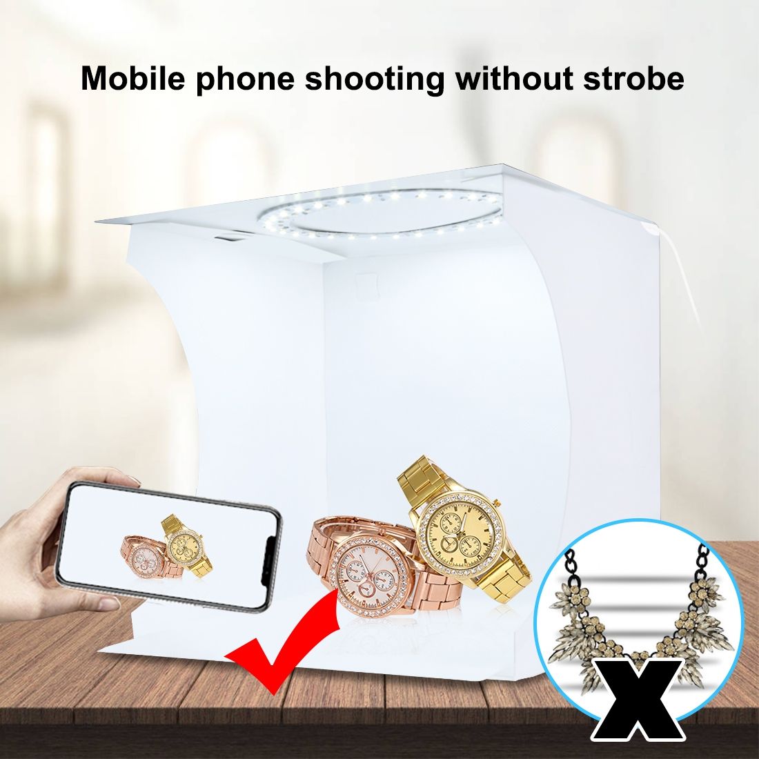 2. Light box Studio allows quick and easy shooting of small products such as jewelry, accessories, toys, watches, gadgets and other items.