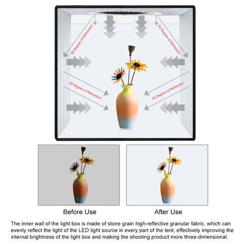 PULUZ 30cm Folding Ring Light Photo Studio Shooting Tent BoxStudio Box Features1. The photography light box is designed for small items of photography enthusiasts, crafters, artists, etsy sellers and other online sellers, professionals and product advertising clients.