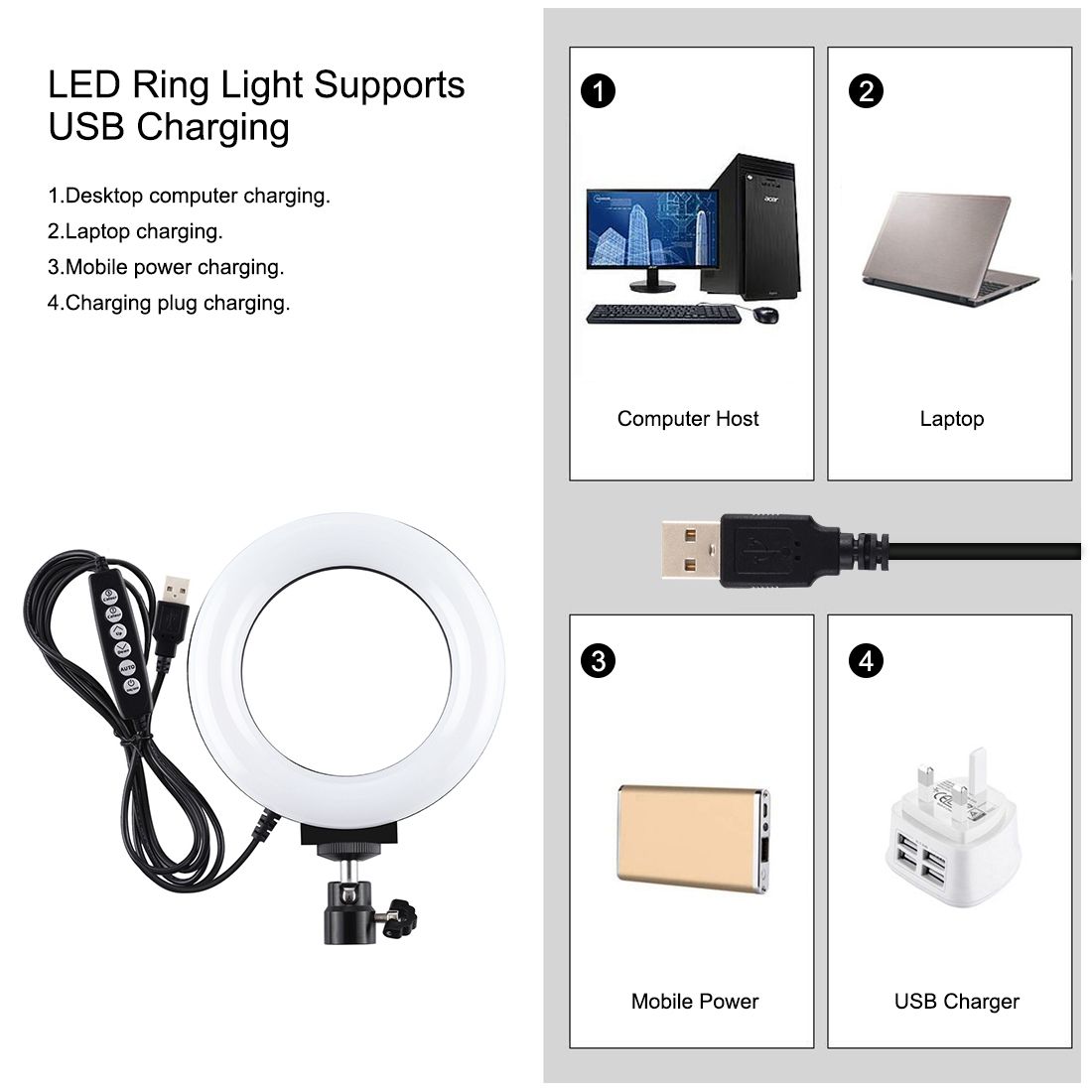Ring LED Light1. LED ring light can be mounted on the holder and take it anywhere, it can also be removed from the stand at any time, the tripod ball head can 360 degree rotating can free to adjust to any angle (The holder is not included).