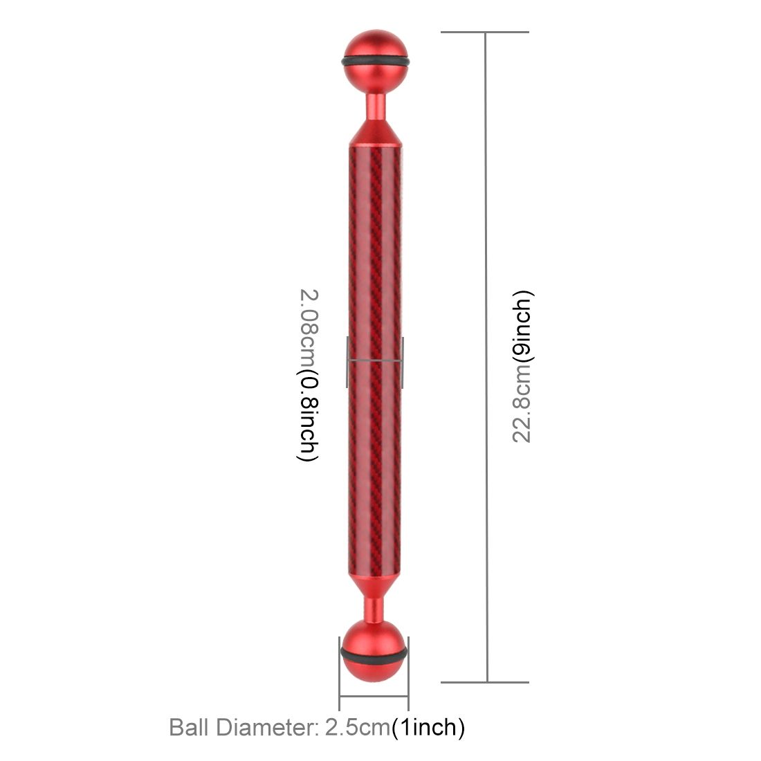 PULUZ 9 inch 22.8cm Length 20.8mm Diameter Dual Balls Carbon Fiber Floating Arm, Ball Diameter: 25mm(Red)