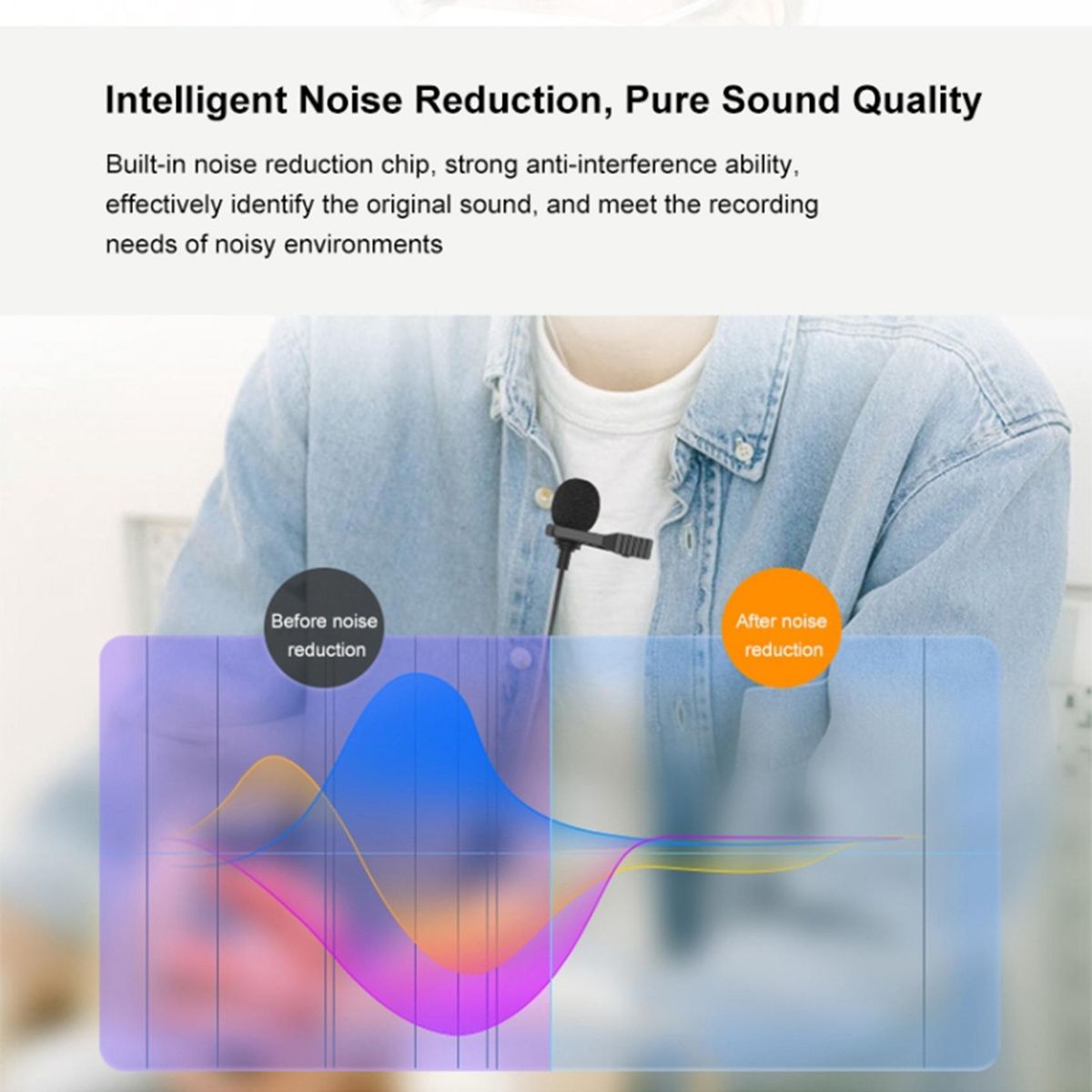 2. 70dB SNR for Clearer Audio: Built-in audio processing chip, featuring with 70dB of SNR, captures audio with more details meanwhile the signal noise very low during transmission, reproducing more and clearer sound than other ordinary mics.