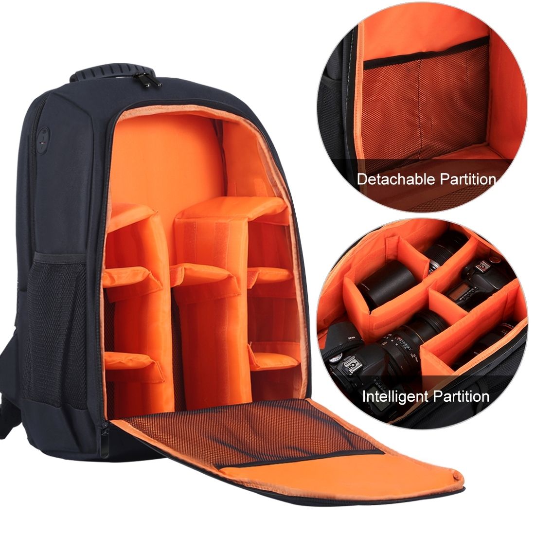 5. The main pocket equips with a variety of sub bags: Camera bag, notebook bag, iPad case, phone case, magazine or cloth case, sunglasses or small objects case, independent water bottle bag, etc.
