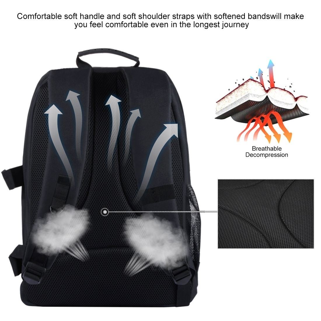 2. Comfortable soft handle and soft shoulder straps with softened bandswill make you feel comfortable even in the longest journey.