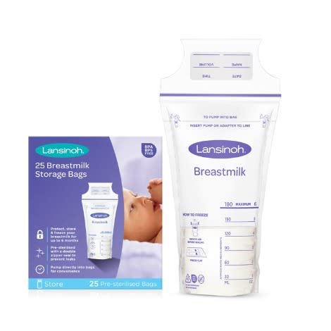 25 X Breastmilk Storage BagsPerfect for storing in the fridge or freezer, upright or laid down with no risk of leaksPre-sterilised and crafted from food-safe polyethylene with a hygienic, tamper-evident, and secure tear-away topEach bag holds up to 6floz/180ml of breastmilkAttach and pump directly into bag with any Lansinoh pumpsWrite-on tab to keep track of how long the breastmilk has been stored