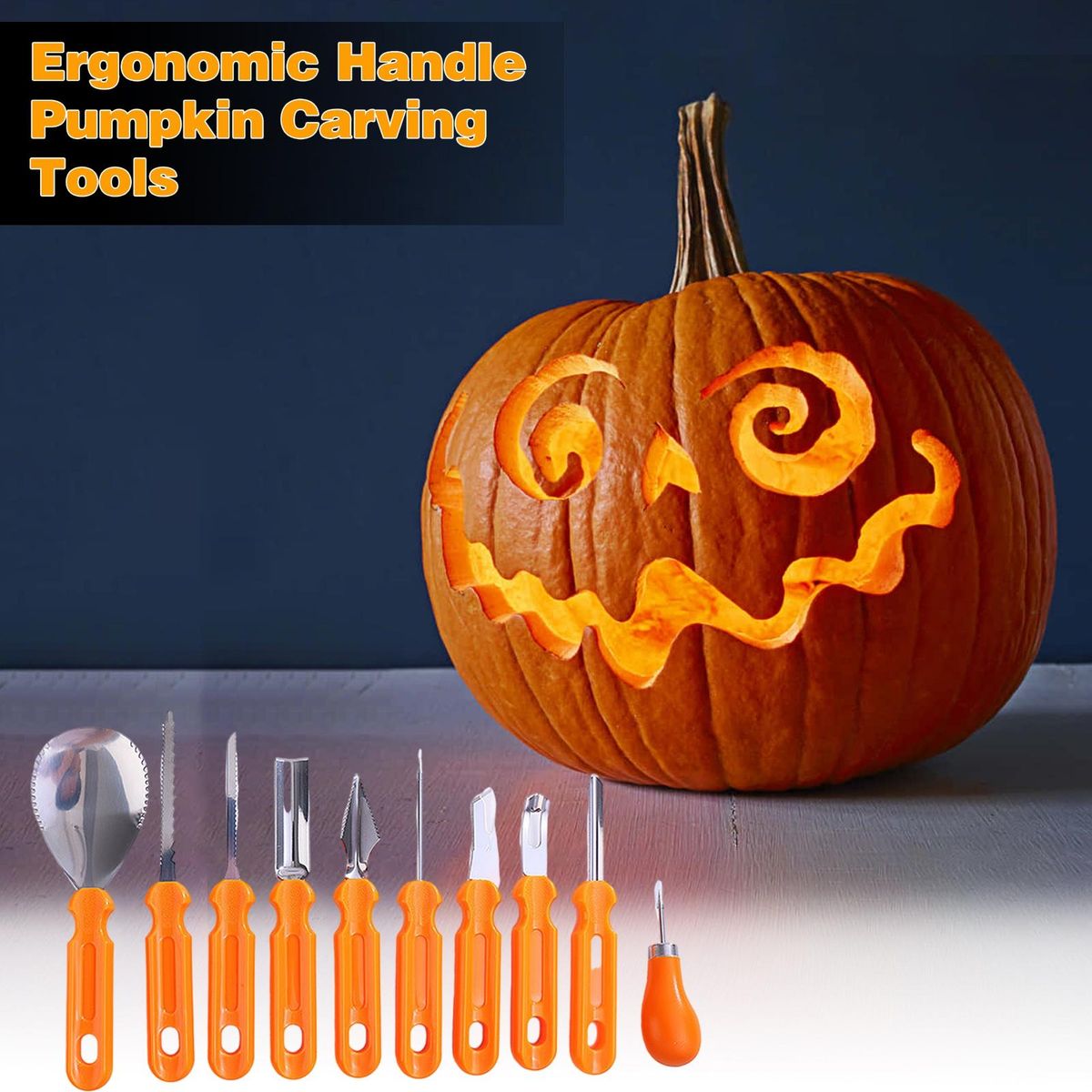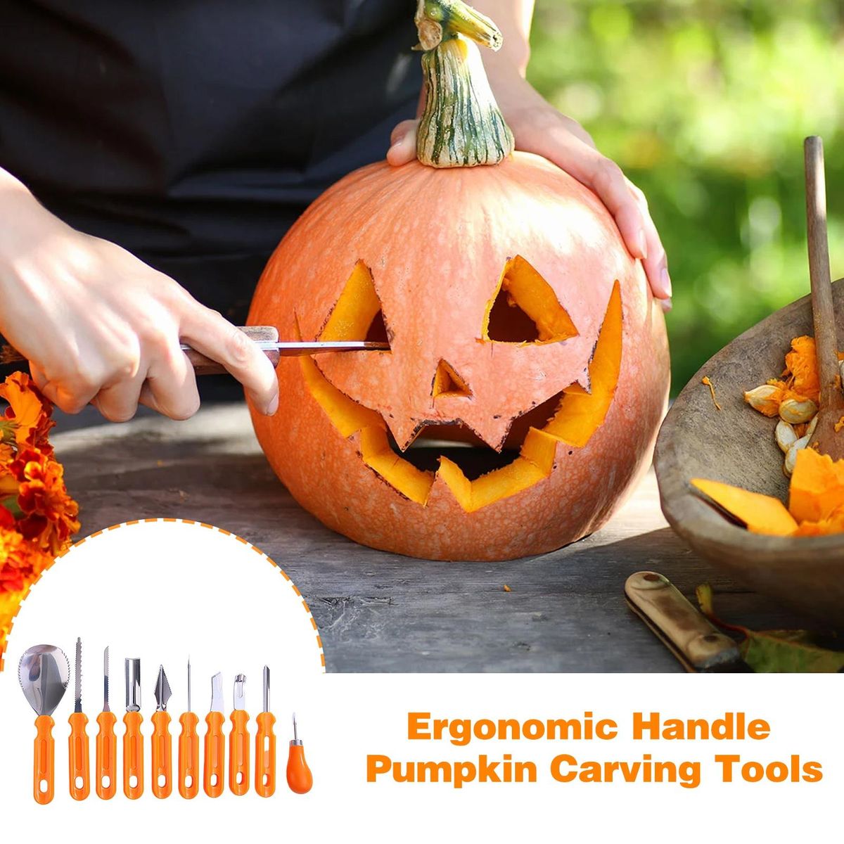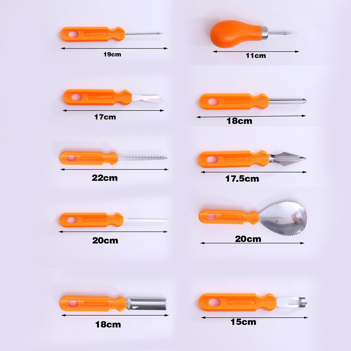Our high-quality pumpkin carving tools kit, designed to make your pumpkin carving experience easy and enjoyable. this kit includes 10 stainless steel tools that are perfect for carving, scooping, and scraping pumpkins. with a variety of blade shapes and sizes, you can create detailed and intricate designs on your pumpkins.
