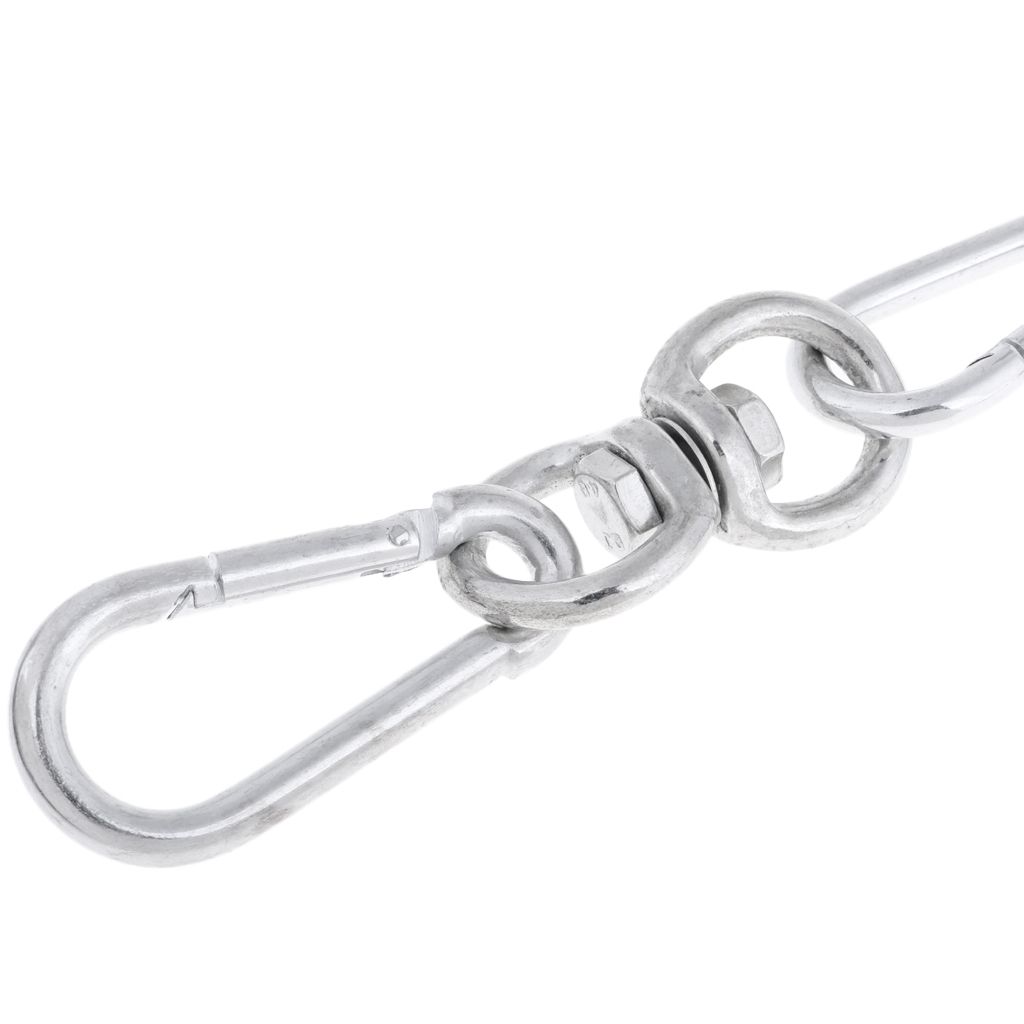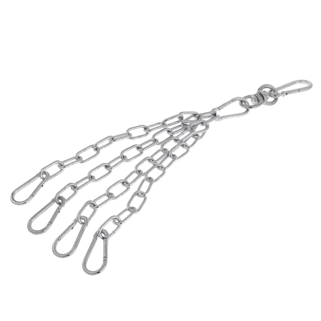 This free-turning swivel is made of to help prevent scratches, rust and corroding.It can be affixed into wooden beams or drill fixed into other suitable places.4 snap hooks to secure your bag.Strong chain for your most intense cardio and strength building training sessions.Perfect for boxing, MMA, muay thai, or any of your favorite contact sports heavybag training.