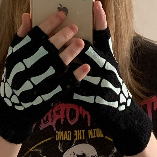 New Punk Gloves Unisex Halloween Skeleton Skull Half Finger Gloves Glow In The Dark Fingerless Stretch Knitted Winter MittensSpecification:Material: PolyesterType/Color: Skeleton/Half FingerSize: One Size145x85mm(5.71x3.35in)Quantity: 1 Pair(other accessories demo in the picture are not included!) New Punk Gloves Unisex Halloween Skeleton Skull Half Finger Gloves Glow In The Dark Fingerless Stretch Knitted Winter MittensNew Punk Gloves Unisex Halloween Skeleton Skull Half Finger Gloves Glow In The Dark Fingerless Stretch Knitted Winter Mittens