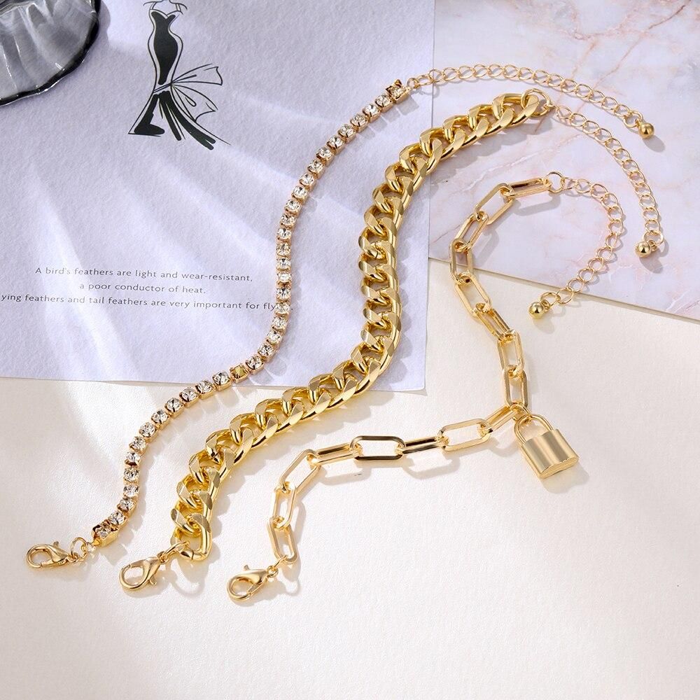 Buy Punk Heavy Metal Crystal Lock Pendant Bracelet Set Female Hip Hop Rock Metal Thick Geometric Chain Bangles Bracelet Jewelry in Nigeria