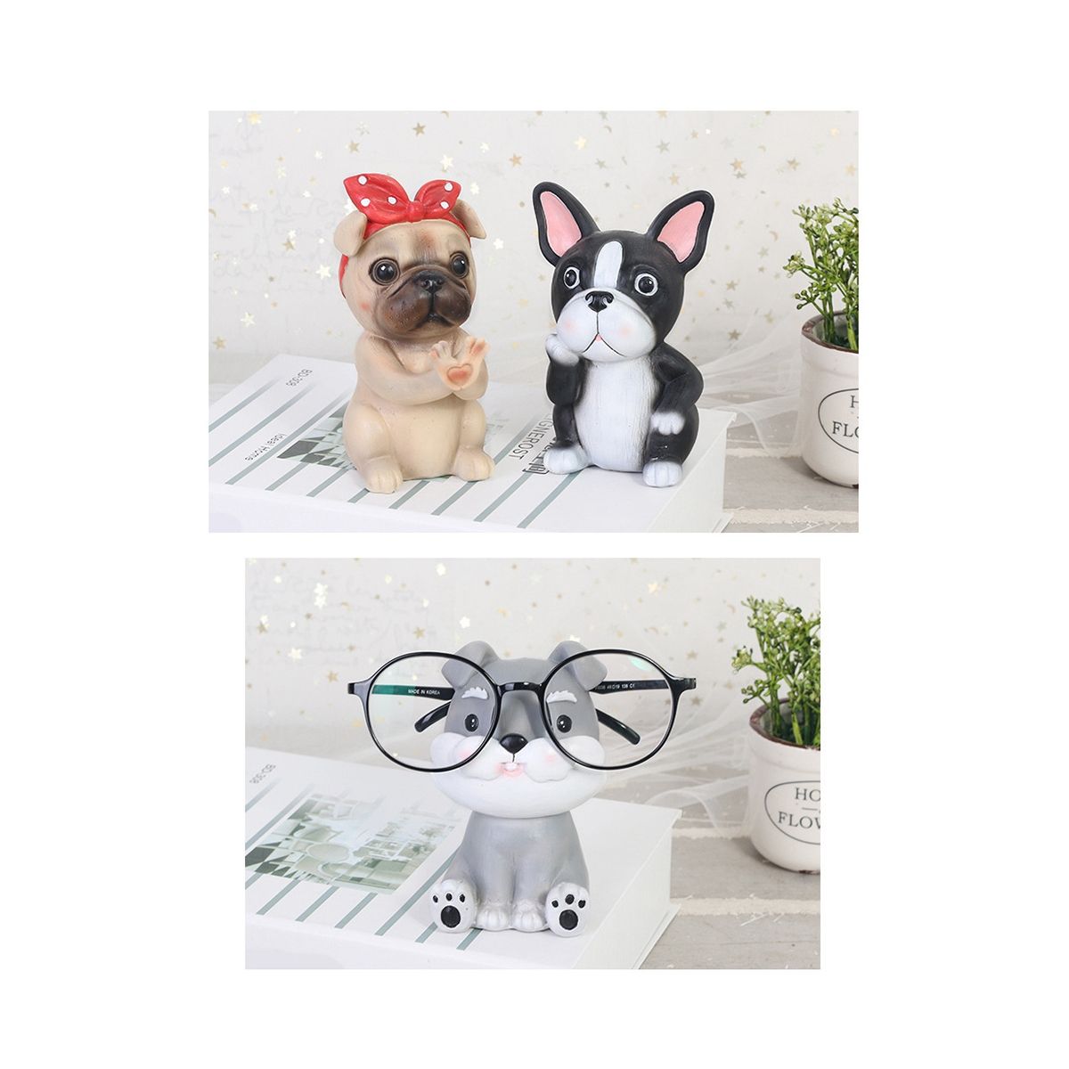 Detailed Information About The Product:Dog glasses stand is very cute and a great way to store your glasses when you want to take off your eyeglass, avoid the lens getting scratching or crushed.