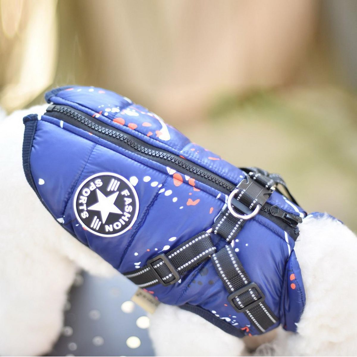 It is a pet costume lined with fleece, blocks the wind and protects against the cold, suitable for autumn and winter dress.