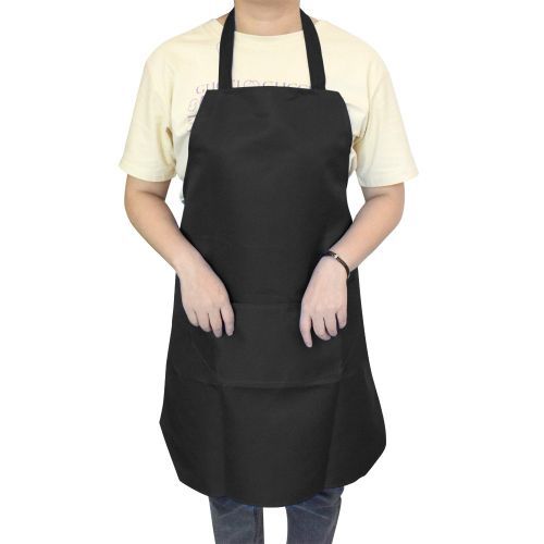 1X Cooking Apron Men Woman Pure Color Cotton Polyester Sleeveless Black Apron with Double Pocket Household Cleaning For Mom Dad