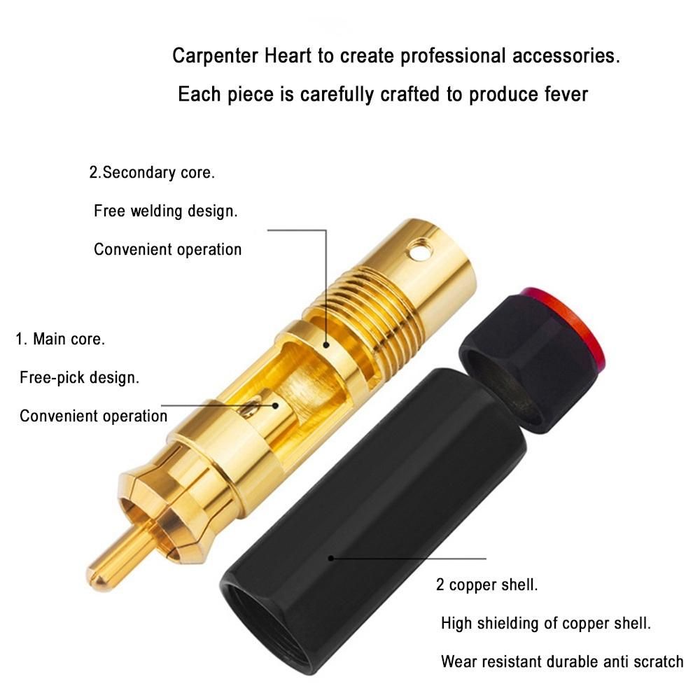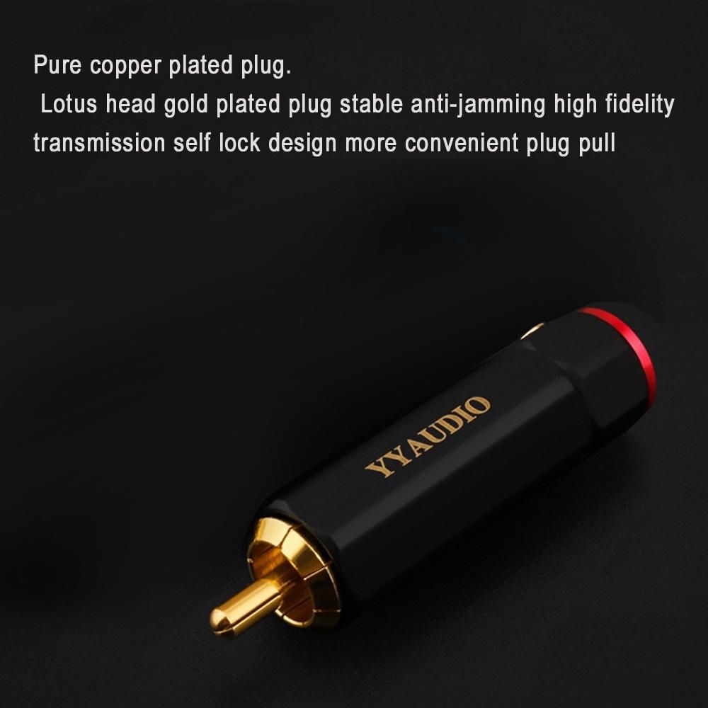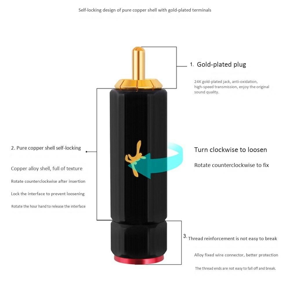 Pure copper gold-plated plug lotus head gold-plated plug, stable anti-interference, high fidelity transmission -locking design, more convenient plug-in. locking design of gold-plated terminal with pure copper shell.