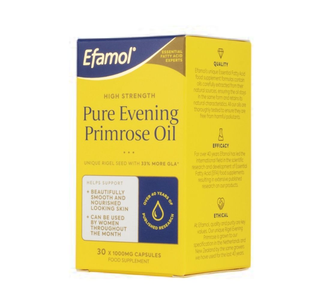 Efamol Woman contains 33% more Evening Primrose Oil than most brands in the market.It is one of the most potent evening primrose oil supplements available, containing high levels of gamma linolenic acid(GLA).it helps to support beautifully nourished and healthy looking skin.it also contain vitamin E which is an antioxidant with the ability to protect the cells from harmful free radicals or oxidative stress so by preserving youthfulness.other benrfits include maitainance of hormonal balance, nerve health, hair,skin and nails.suggested use - adults 2 capsules per day and children - one capsule a day.