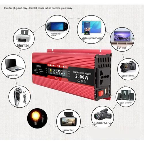 Power Inverter;Pure Sine Wave Power Inverter 1200 2000 Watt 12v;12V DC to 220V AC Converter Home Use Inverter;Power Inverter for Truck Home Outdoor LCD Display;Car Plug Inverter Adapter Power Converter;portable Dual USB Charging Ports