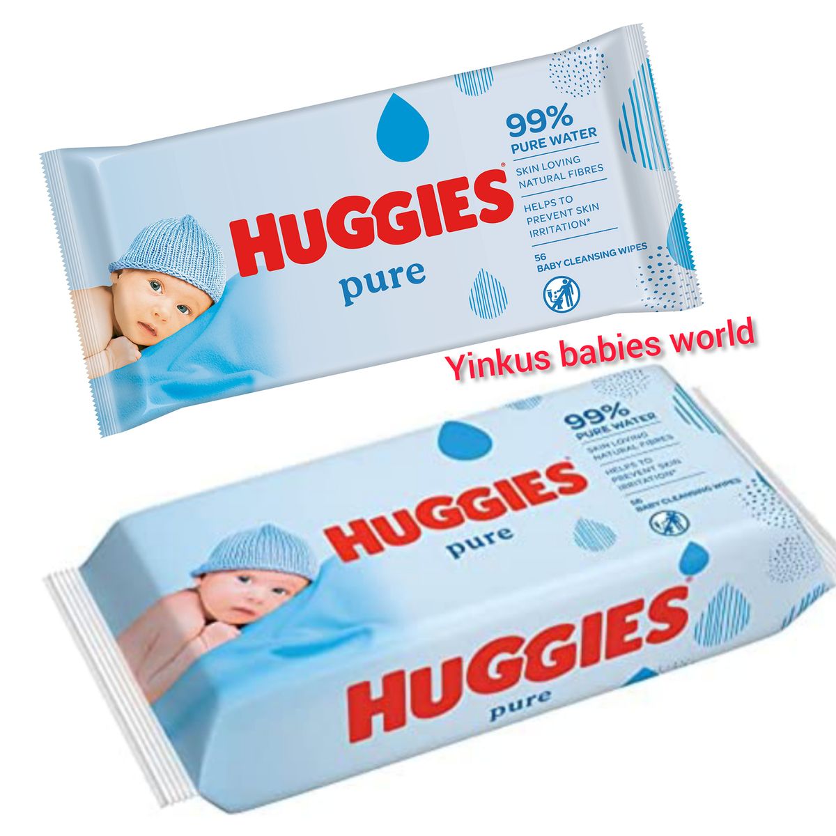 Huggies® Pure Baby Wipes. You are sensitive about your little one, which is only natural. They're so small, so pure, so gentle. And of course, you don't want anything harmful to touch their delicate skin. For that, you'll want a wipe as sensitive and caring as you are.Huggies® Pure Wipes, made with skin loving natural* fibres, gently clean and protect baby's delicate skin. With 99% pure water and no fragrance, being hypoallergenic and clinically tested. The purity of water and the touch of Huggies® provides gentle, natural care for your baby. British Skin Foundation recognizes Huggies® research into healthy skin.
