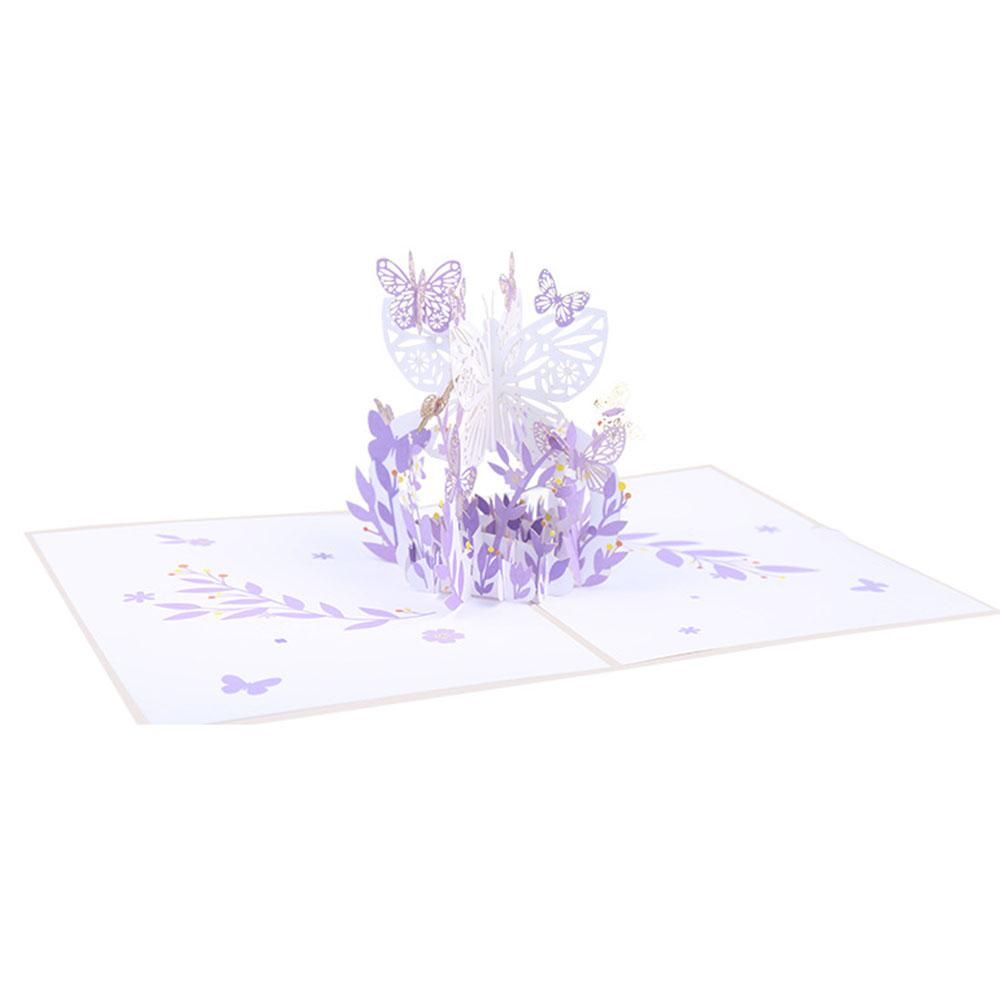 [UNIQUE DESIGN HANDMADE GREETING CARD]Light purple cover with beautiful hot stamping golden printing butterfly, Upon opening the card you'll see magnificent beauty of butterflies, sure to brighten up someone's day.