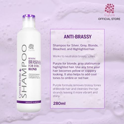 Cynos Blondie Shampoo & Conditioner to Remove Brassiness, Purple Shampoo For Extra Blonde Hair What is the Blondie Shampoo? The Blondie Shampoo is a pigment-depositing product, which works to prevent coloured hair from turning yellow or orang after getting blonde colored. With colour wheel theory, making the faded hair much higher blue ones, and thus restoring lost colours. Blonde, grey, red and even brown locks can all benefit from a silver wash. Why shoud use the Blondie Shampoo? Factors like the environment, weather, styling tools, and using the wrong hair products are some of the main culprits that can cause this. After one or two months with swapped the stresses for golden or icy blonde shades, you may notice a yellow or orange hue, and hair being losing all of its lustre on the top of the hair. Our Blondie Shampoo Advantage: * Based on colour wheel theory, the tresses hue will look considerably brighter. * Contains conditioning agents that help smooth frizzy and colour damaged hair. * Suitable for Blonde, grey, red and even brown locks can all benefit from a silver wash. * With wheat proteins and vitamin B5 to moisturise your hair and Strengthen hair fibres.