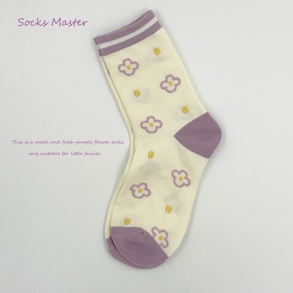 Buy Purple Socks Ins Wind Forest Department Literature And Art Sweet Autumn Flowers Cotton Small Fresh College Wind Tube Socks Children in Nigeria