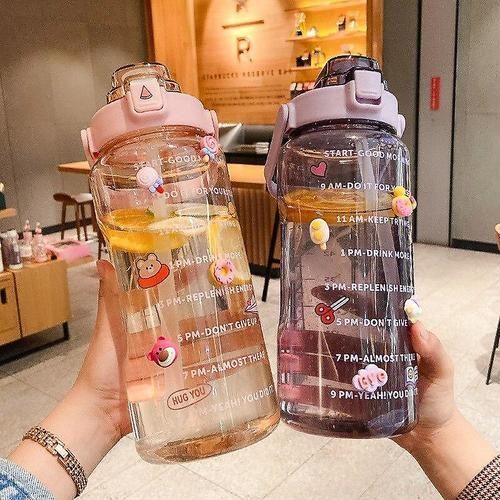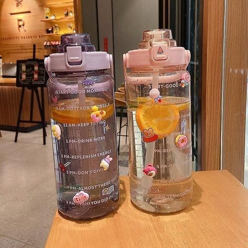 (Purple)2000Ml large capacity sports water cup fitness water bottle with straw portable plastic water bottle cute diy small accessories