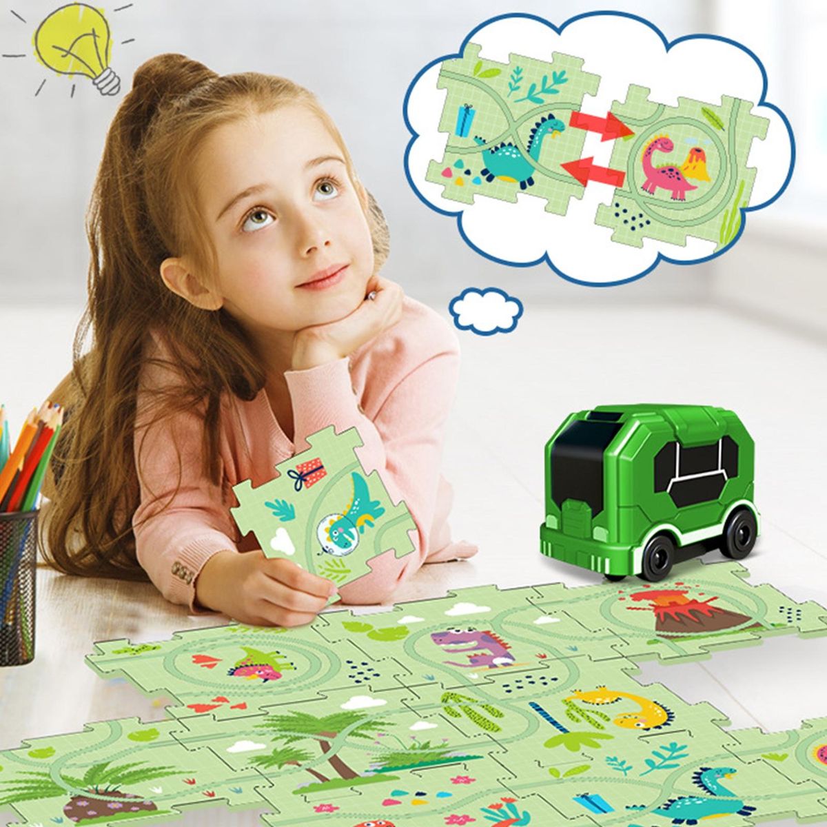 Buy Puzzle Pattern Toy City Map Puzzle Rail Car Set Exciting for Kids Green in Nigeria